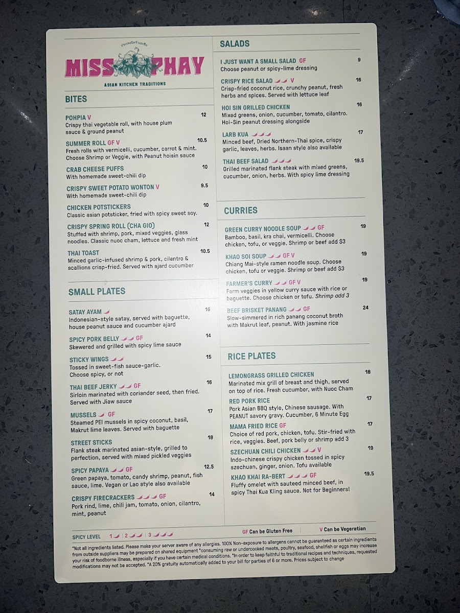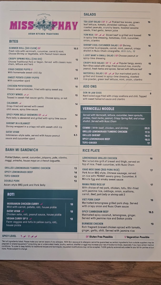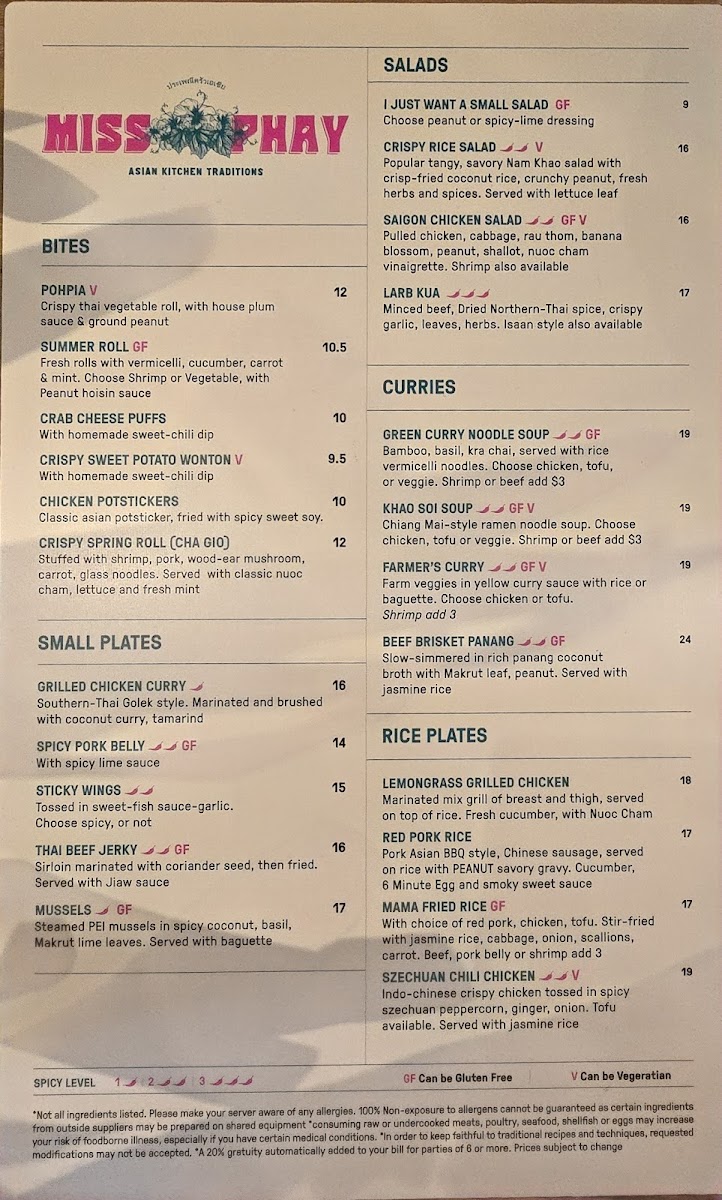 Miss Phay Cafe Menu